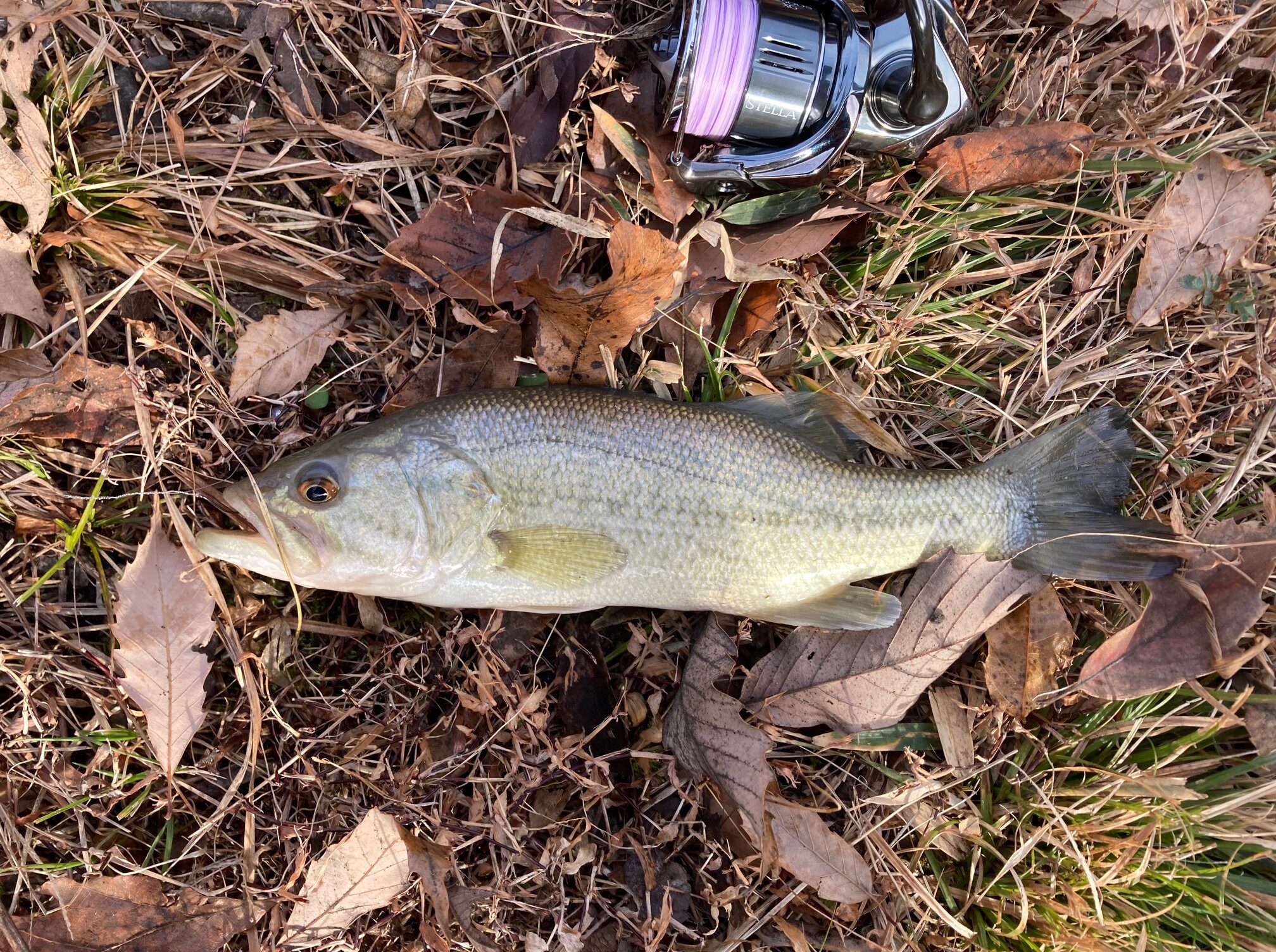また冬に釣れるのは大きな動ける魚だけとよく聞きますが、意外と小バスもルアーにバイトしているものです。