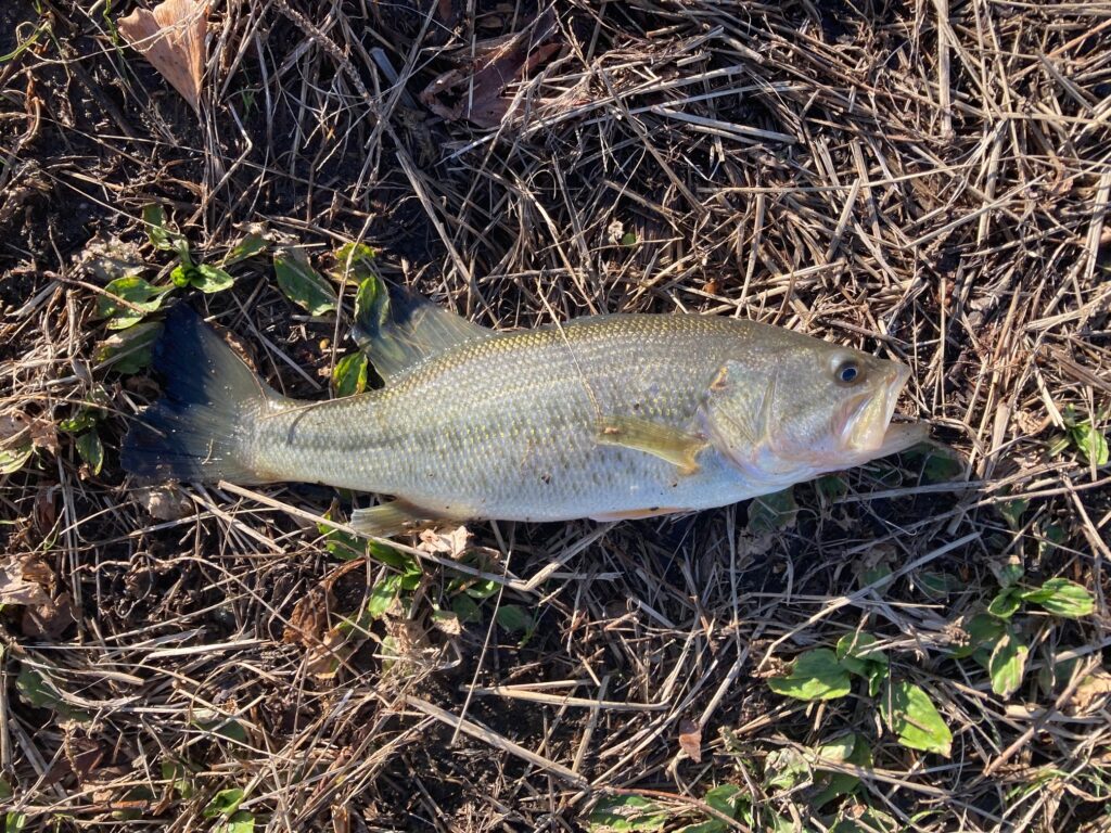 明らかに動けなさそうな体色のバスでもきちんとルアーに食いついてくれた ■1月中旬の野池にて
