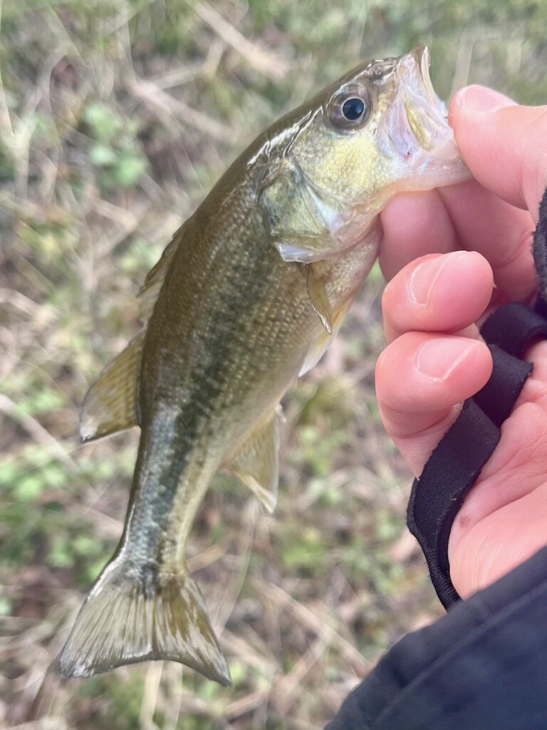 こんなに小さなバスでもガリガリではない。(=エサを食べている)